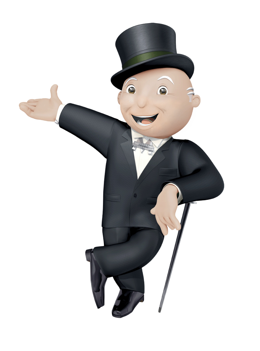 The stunt is capped with a billboard showing the freshly shaved Monopoly Man.